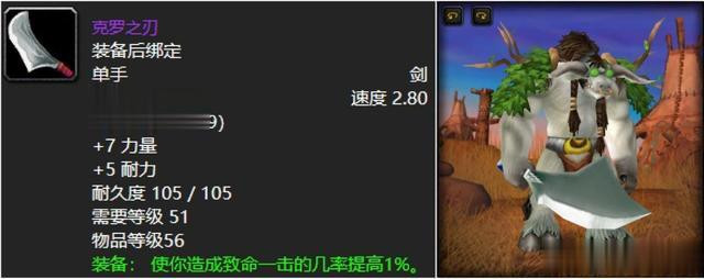 相比较于提布高昂的金币区间,克罗之刃的话就是一般玩家能承受的练级神器了,51级拿下之后直至熔火之心基本不用更迭,见大菜刀克罗如见土豪的传说也是在魔兽圈一直流转,不知道各位大兄弟是否拿过?
